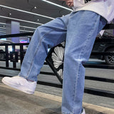 Hombres jeans con bolsillo oblicuo de pierna ancha