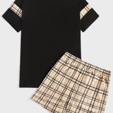 Manfinity modomio camiseta de manga corta con estampado a cuadros y pantalones cortos con cintura con cordon, vintage, para hombres