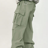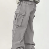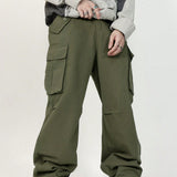 Manfinity hypemode pantalones cargo holgados para hombre con bolsillos con solapa, cintura con cordon lateral