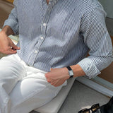 Dazy hombres camisa algodon con estampado de rayas con boton delantero