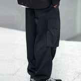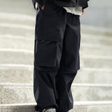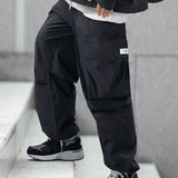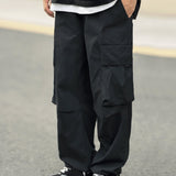 Manfinity emrg pantalones de carga extragrandes para hombre en negro liso, con detalle de parche de letras, bolsillo de solapa y cordon en la cintura, para salir
