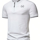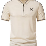 Manfinity homme camisa polo con botones, cuello y ribete a rayas con estampado de plantas para hombres, camisa polo casual de golf para esposo, polo color beige, camisas de golf para hombres, camisas polo casuales para hombres
