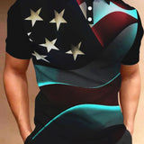 Manfinity legnd hombres polo de estrella con botones y estampado grafico de la bandera estadounidense en colores fashion