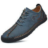 Zapatos de vestir con cordones en la parte delantera con detalle de letras para hombres, zapatos hechos a mano azules de moda