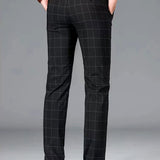 Hombres pantalones de traje de cuadros con bolsillo oblicuo sin cinturon