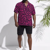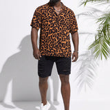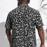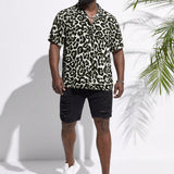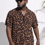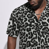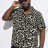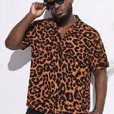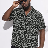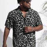 Manfinity cozemod camisa informal para salir con botones y mangas cortas con estampado de leopardo para hombre de talla grande, graficos coloridos