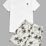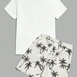 Manfinity vcay camiseta de manga corta con estampado grafico de arbol de coco de bloque de color y shorts con cordon en la cintura para hombre, regalo para el novio