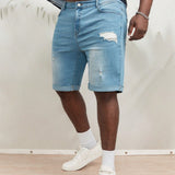 Manfinity rebelgame hombres shorts mezclilla bermuda algodon desgarro crudo con lavado