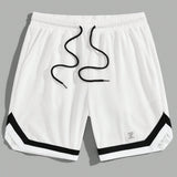 Manfinity rebelgame pantalones cortos sueltos para hombre con detalle de parche con letras, ribete de contraste y cintura con cordon