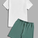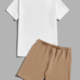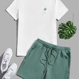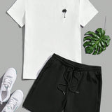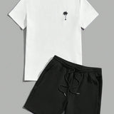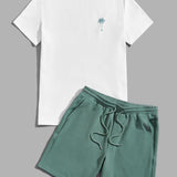 Manfinity vcay hombres con estampado de arbol de coco camiseta & de cintura con cordon shorts