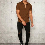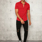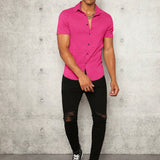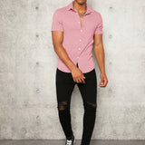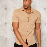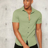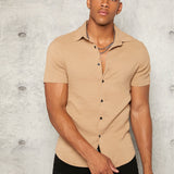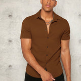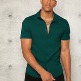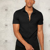 Manfinity modomio hombres camisa unicolor con boton delantero