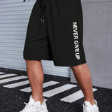 Manfinity homme pantalones cortos con cintura de cordon y estampado de eslogan para hombre en talla de letras