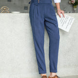 Manfinity mode hombres pantalones de traje con diseno de hebilla con bolsillo oblicuo