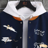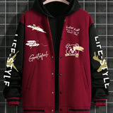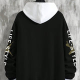 Manfinity emrg chaqueta sin buzos con capucha para hombres con grafico de letras y bloques de color en los hombros
