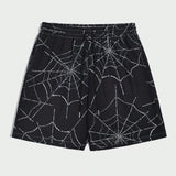 Romwe goth pantalones cortos de cintura con cordon y estampado de tela de arana para hombre