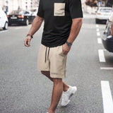 Manfinity homme conjunto de camiseta de manga corta casual con grafico de eslogan y shorts de cintura con cordon para hombre, regalo para novio