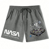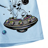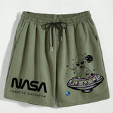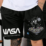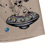 Manfinity emrg pantalones cortos hombre con ajuste holgado, graficos de alienigenas y letras, cintura ajustable