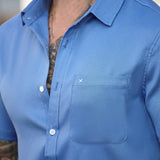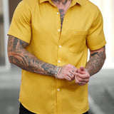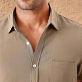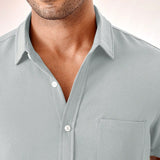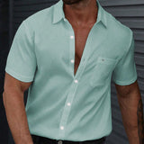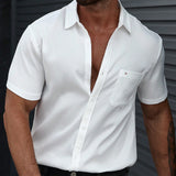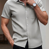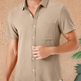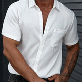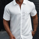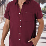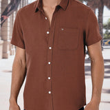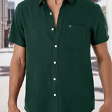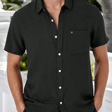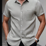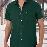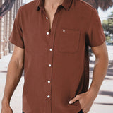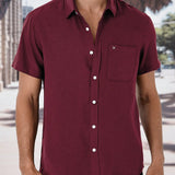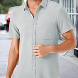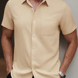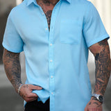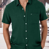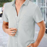 Manfinity homme hombres camisa unicolor con boton con parche de bolsillo