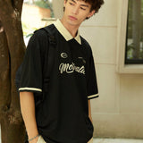 Sporsity camiseta polo de ajuste holgado con cuello de contraste y grafico de letras para hombre, para tenis