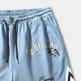 Romwe men academia pantalones cortos de baloncesto con cordon en la cintura, grafico de letras y ribete a rayas, para la escuela