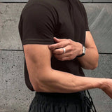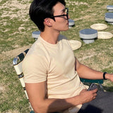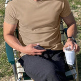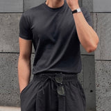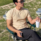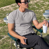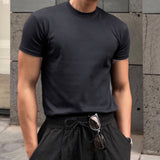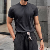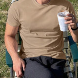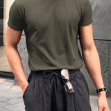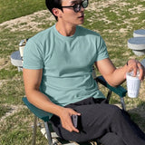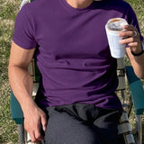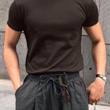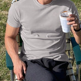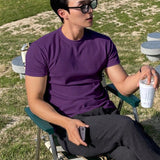Hombres camiseta algodon unicolor de cuello redondo