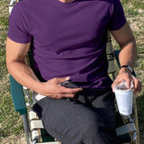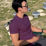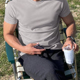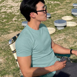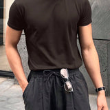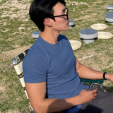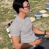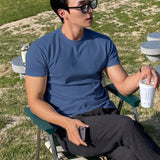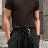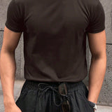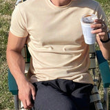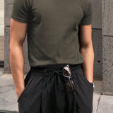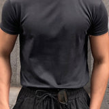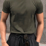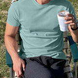 Hombres camiseta algodon unicolor de cuello redondo