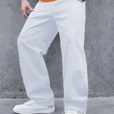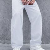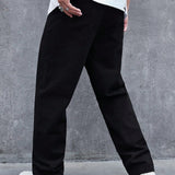 Manfinity hombres jeans de pierna ancha con bolsillo inclinado, jean de lavado largo y holgado en color negro liso estilo carga para vacaciones y2k, regalo para novio