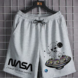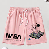 Manfinity emrg pantalones cortos sueltos con cordon de cintura para hombre, con graficos de alienigenas y letras