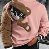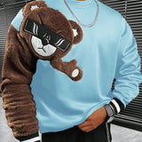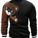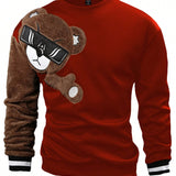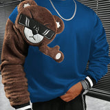 Manfinity homme sueter informal de manga larga de hombre con estampado de oso, corte holgado