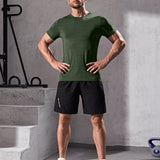 Manfinity sport corelite camiseta basica de entrenamiento con diseno de cinta frontal, estilo novio, para hombre