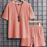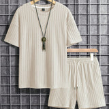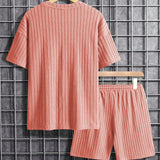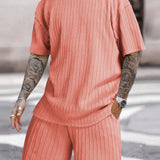Manfinity conjunto de camiseta de manga corta y pantalones cortos de unicolor, corte holgado, hombros caidos para hombre, atuendo informal para salir