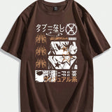 Romwe men anime camiseta grafica con letras japonesas y figuras, escolar, para hombre