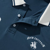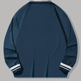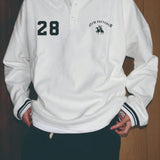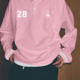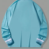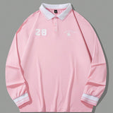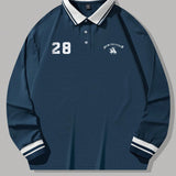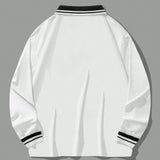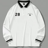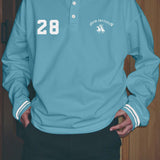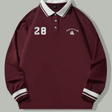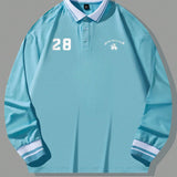 Sporsity polo holgado para hombre con graficos de letras y ribete a rayas, polo casual urbano con graficos de bloques de colores y manga larga, regalo para novio