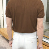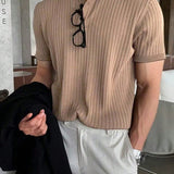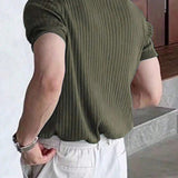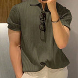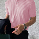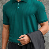 Homme camisa polo casual de oficina sencilla de cuarto de boton de punto acanalado para hombre, para el esposo
