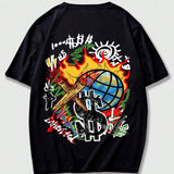 Romwe men street life camiseta de hombre con estampado de dibujos animados, escuela