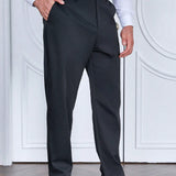 Manfinity mode pantalones largos solidos con bolsillos inclinados para hombre con pierna recta, vestimenta sencilla de color negro para salir en talla plus