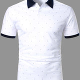 Manfinity mode camisa polo de trabajo con bloques de color, contraste de cuello y estampado total para hombres de estilo casual de negocios