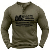 Camisa tipo polo de manga larga con estampado de bandera americana, casual para hombres