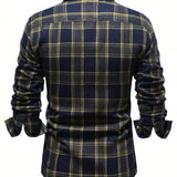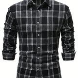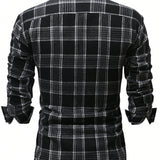 Camisa de manga larga con botones y estampado de cuadros para hombres