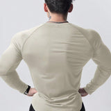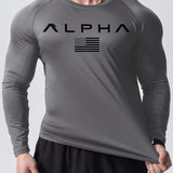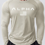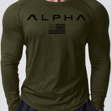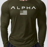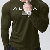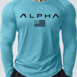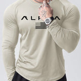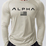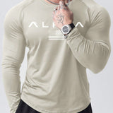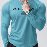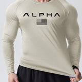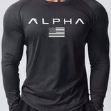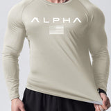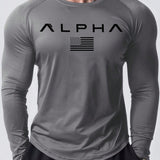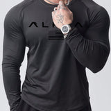 Manfinity fitness camiseta deportiva de manga raglan con grafico de letra, estilo novio para hombre, camiseta de entrenamiento de manga larga