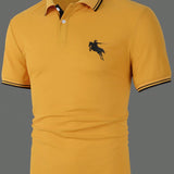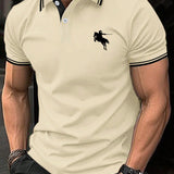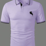 Manfinity camisa polo con cuello a rayas y estampado de caballos para hombre, para el trabajo, para el esposo y papa