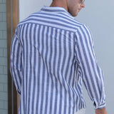 Hombres talla grande camisa con estampado de rayas con boton delantero