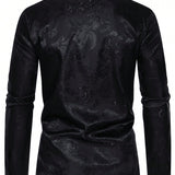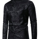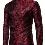 Manfinity aftrdrk camisa suelta de hombre con estampado de cachemira, botones, manga larga, grafico de seda, color rojo oscuro liso, estilo vintage disco