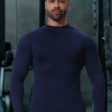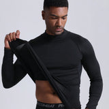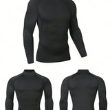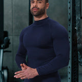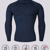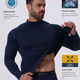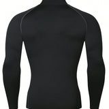 Camiseta de manga larga de cuello alto estilo novio para hombre con alta elasticidad y secado rapido, camiseta para correr y hacer ejercicio con proteccion solar, ropa de gimnasio. camiseta basica estilo novio para hombre, top de compresion estilo novio