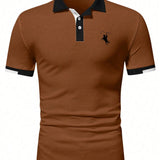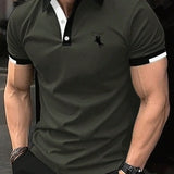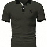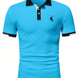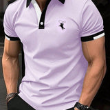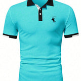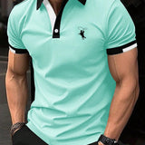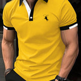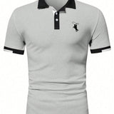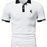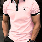 Manfinity mode hombres camisa polo con estampado de caballo ribete en contraste