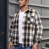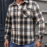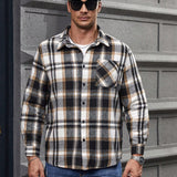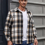 Homme hombres talla grande abrigo con estampado de cuadros con parche de bolsillo