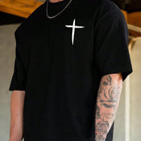 Manfinity legnd camiseta de manga corta casual con estampado de cruz para hombre de talla grande para salir