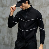 Manfinity sport corelite chaqueta deportiva con cremallera y ribete de contraste, estilo novio, para entrenamiento