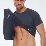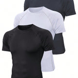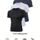 Conjunto de 3 camisetas de compresion de estilo novio para hombre, de alta elasticidad, secado rapido, manga corta, para correr, ropa de gimnasio de verano, camiseta basica de estilo novio, camiseta de compresion