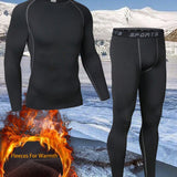 Conjunto de ropa interior termica de estilo novio para gimnasio, deportes al aire libre, senderismo, caza, esqui: camiseta y pantalones forrados termicamente, ropa deportiva